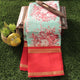 Pale Aqua Blue Color Pure Handloom Satin Silk Digital Print Saree With Red Color Blouse (COD ON REQUEST)