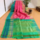 Parrot Green, Pure Handloom Silk Saree Contrast Matching Pink Pallu & Pink Blouse