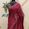 Maroon Flush Color Pallu Embroidery Half Tussar Saree With Running Blouse