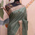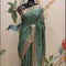 Sea Green Color Contrast Pallu Embroidery Half Tussar Saree With Contrast Blouse